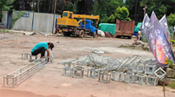 夏日炎炎,室外溫度高達(dá)42度,這樣的天氣足以讓大多數(shù)人望而卻步,選擇避暑休息。然而,對于三中心家人劉洋而言,這不僅僅是一個(gè)考驗(yàn),更是一份責(zé)任與擔(dān)當(dāng)。面對客戶戶外活動(dòng)的迫切需求,他毅然決然地扛起了組裝桁架的重任。地上散落的桁架部件,在烈日的炙烤下更顯沉重,但劉洋的心中只有一個(gè)念頭——“在預(yù)定的時(shí)間內(nèi)必須完成所有的桁架組裝工作”。