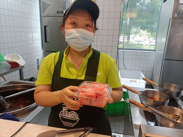 劉女士感激之余,匆匆用餐后返回工作崗位。而這份小小的善意,并未被遺忘。第二天,劉女士不僅第一時間返回餐廳補刷了餐卡,還特意在餐廳的水果店挑選了一盒清甜的西瓜,親自送到謝元琴手中,并親切地說:“天太熱,你吃盒西瓜解解暑。”這一舉動,讓謝元琴倍感意外和溫暖,他沒想到自己微不足道的幫助,竟能收獲如此真誠的感激與回饋。