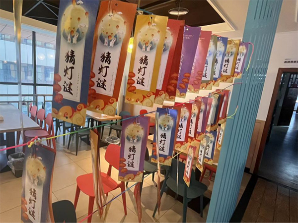 同日,雅福心悅餐廳二樓職工餐廳也舉辦了以“慶中秋,共團圓”為主題的活動。猜燈謎、贏獎品環節依舊熱鬧非凡,職工們積極參與,樂在其中。